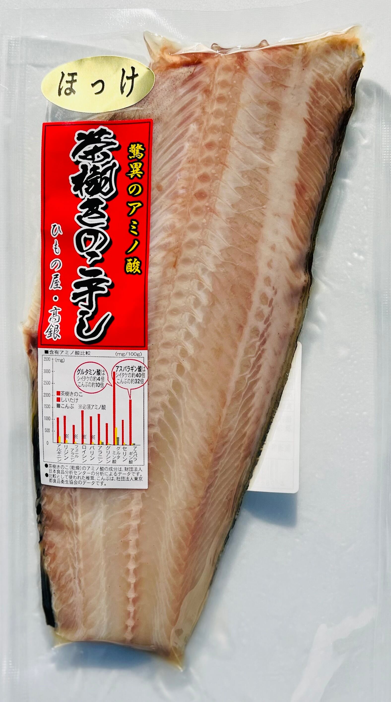 18種類のアミノ酸と旨み成分のグルタミン酸をたっぷり含んだ茶樹きのこのエキスに漬け込んで製造した当店自慢の干物です。